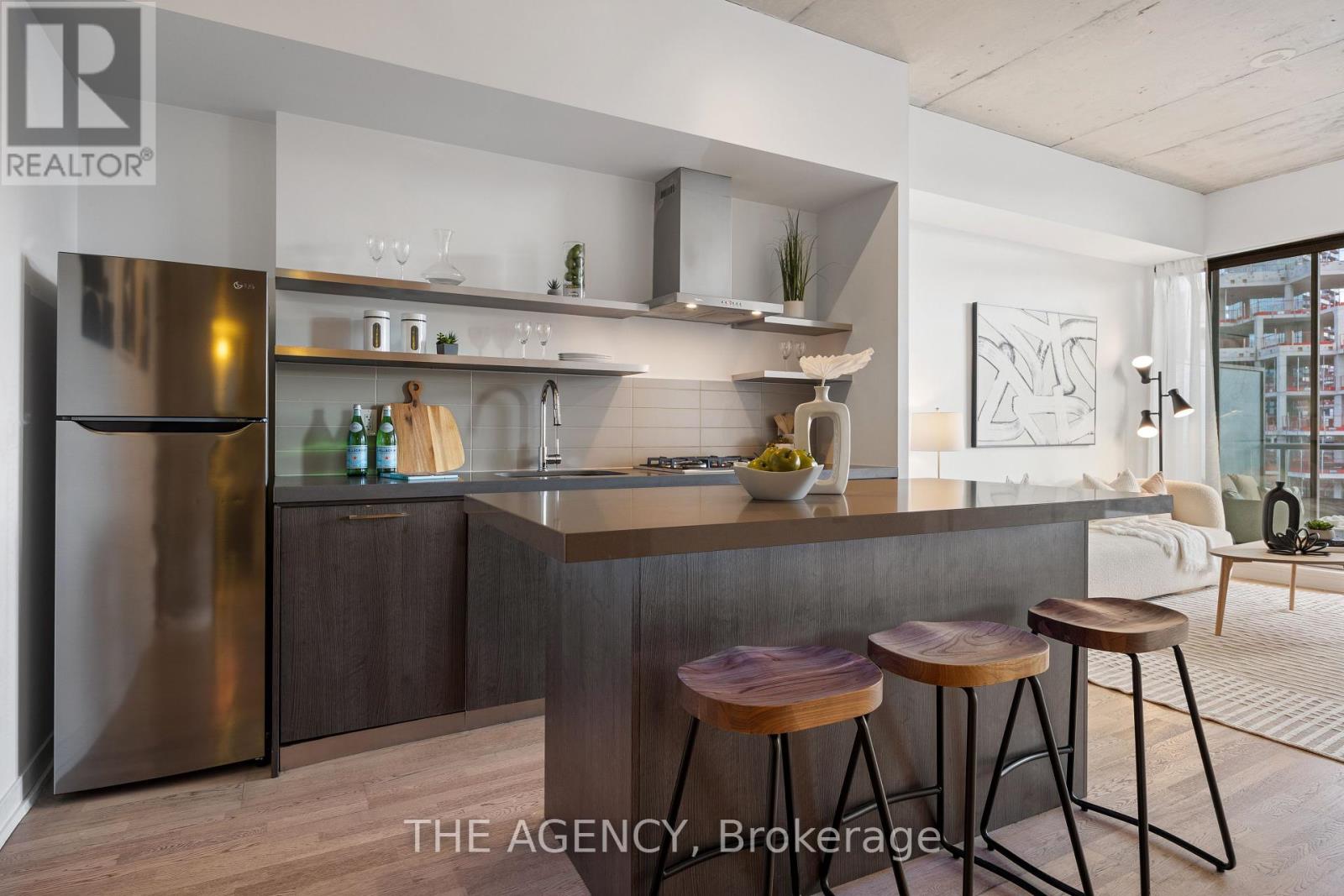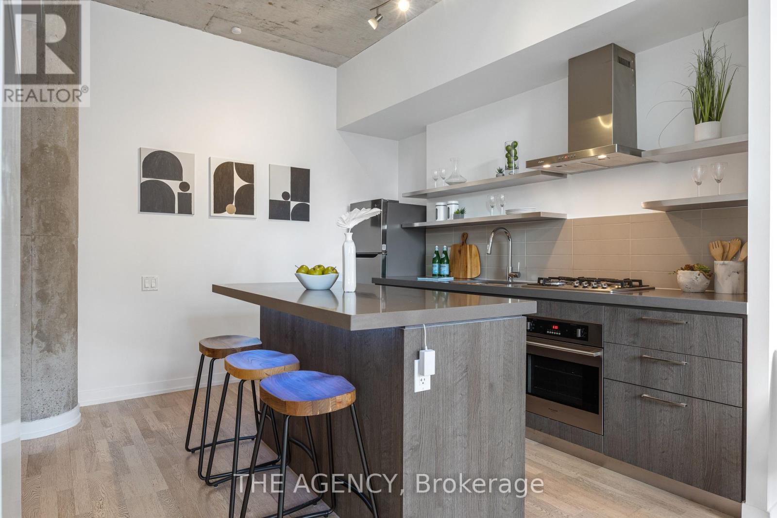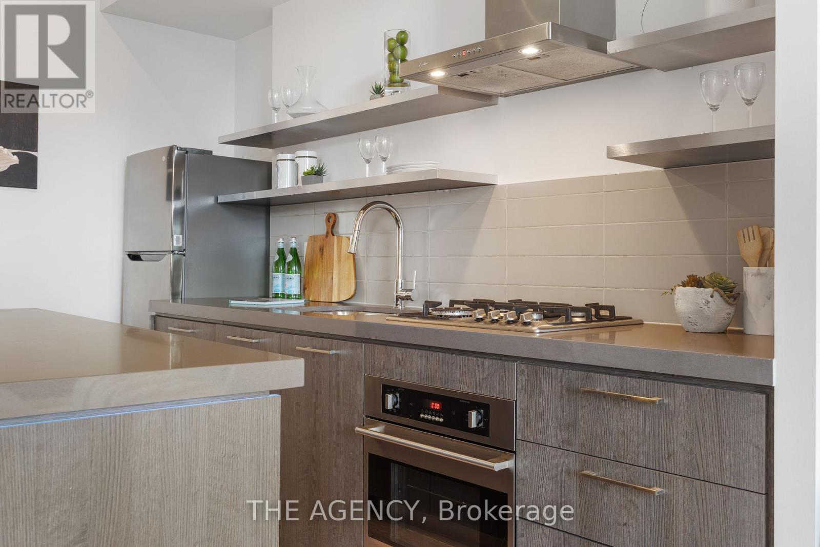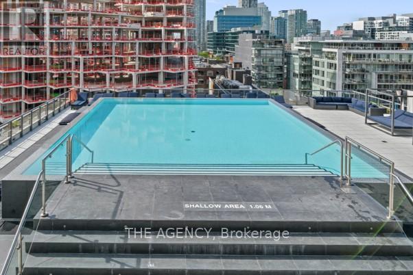 Available for short-term!!! Step into the epitome of King West luxury at Fashion House Condos! One of Downtown Toronto’s most sought-after buildings, this boutique gem radiates sophistication from the entrance onward. Located atop ‘The Keg Steakhouse’ and ‘Majesty’s Pleasure’ social beauty club, and across from the iconic ‘Rodney’s Oyster House’ and ‘Mademoiselle Raw Bar & Grill’, this is Fashion District living at its finest– surrounded by the vibrant nightlife and renowned culinary experiences of King West. This south-facing unit is flooded with natural light and boasts forever-unobstructed views of the district and the CN Tower, visible from both the balcony and bedroom. Enjoy open-concept, loft-style, living with 10′ exposed concrete ceilings and pillars, and floor-to-ceiling windows. Step out onto a cabana-style balcony overlooking the buildings signature infinity pool- perfect for poolside vibes from the comfort of your home. With a gas BBQ hookup, deck tiles, and a luxurious round daybed, your outdoor escape awaits. Inside, discover a modern, open-concept interior with a practical layout. The European-style chef’s kitchen features open top shelving, high-end stainless-steel appliances, a gas cooktop, and a spacious waterfall island. The primary bedroom, fits a king bed, offers a large walk-in closet and stunning views. The spacious den comfortably fits a queen-size bed and includes built-in storage. Both the bedroom and the den come with privacy sliding doors. The rarely available 5-piece bathroom provides the luxury of both a shower stall and a bathtub. Top-notch amenities include an infinity pool and cabanas connected to a state-of-the-art gym and a party room. TTC at your doorstep, 5 minutes by bike to the Toronto Waterfront and TikiTaxi station– your King West oasis awaits! The unit comes with a parking spot and a locker, very close to each other. Heat and water included in the maintenance fees. (id:9546)