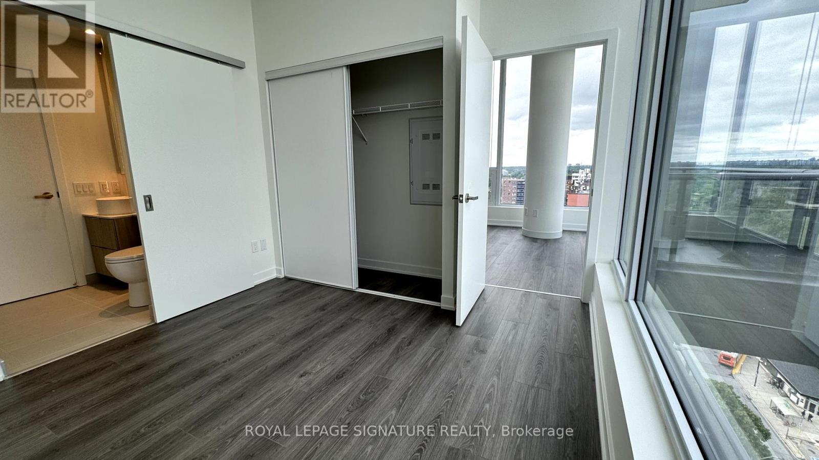 Luxurious 1-bedroom executive suite at Westport Condos in sought-after Port Credit. Soaring 14 ft ceilings and expansive floor-to-ceiling windows flood the space with natural light, offering breathtaking northwest sunset views from your private balcony. The upgraded kitchen is a chef’s dream, boasting oversized quartz countertops, top-of-the-line integrated appliances, and elegant finishes. The spacious bathroom features a built-in vanity and ample storage, adding a touch of luxury to your daily routine. Wide plank laminate flooring flows seamlessly throughout, enhancing the modern aesthetic of this unique condo. Indulge in the vibrant Port Credit lifestyle with waterfront trails, boutique shops, and gourmet restaurants just steps away. Westport Condos offers residents exclusive amenities, including a fitness center, rooftop terrace, and concierge service. This is your opportunity to live in style and comfort in one of Mississauga’s most desirable neighborhoods. (id:9546)