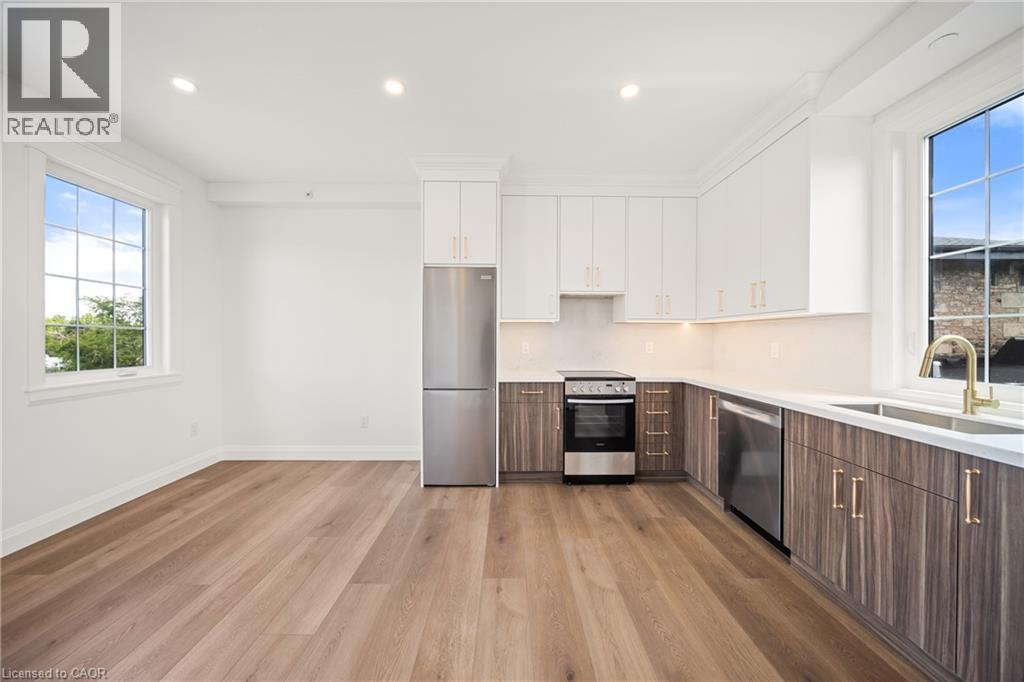 Step into something extraordinary. This brand-new, never-lived-in 1-bedroom + den penthouse unit in the heart of historic downtown Milton is where old-world charm collides with bold, modern luxury. Framed by a striking sage green door, the vibe starts before you even enter. Inside, it’s all about rich hardwood floors, custom marble-tiled bathrooms with heated floors, luxury crown molding, and gold-accented lighting that nods to the building’s timeless character—while delivering sleek, high-end appeal. The modern kitchen is made to impress, with stainless steel appliances, soft-touch cabinetry, and oversized window sills that flood the space with natural light. The open layout and high ceilings bring serious loft energy, while the versatile den offers space to create—whether it’s a home office, guest nook, or cozy media zone. Set in a boutique building with a beautifully curated common hallway, you’re surrounded by heritage vibes and design-forward finishes from the ground up. Live steps from La Toscana, Pasqualino, the Farmer’s Market, schools, parks, and major highways. This is more than a place to live—it’s a lifestyle with character and class. (id:9546)
