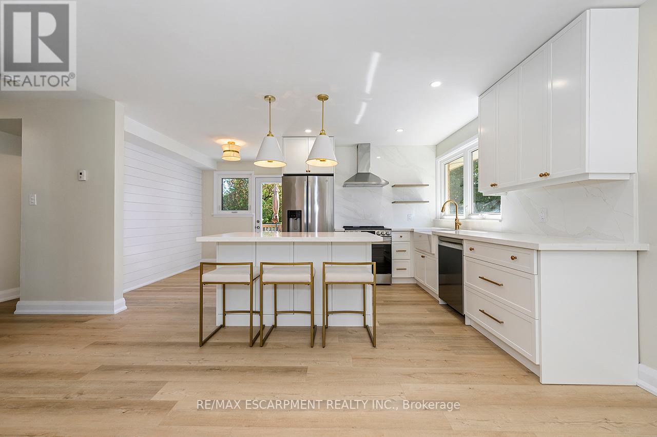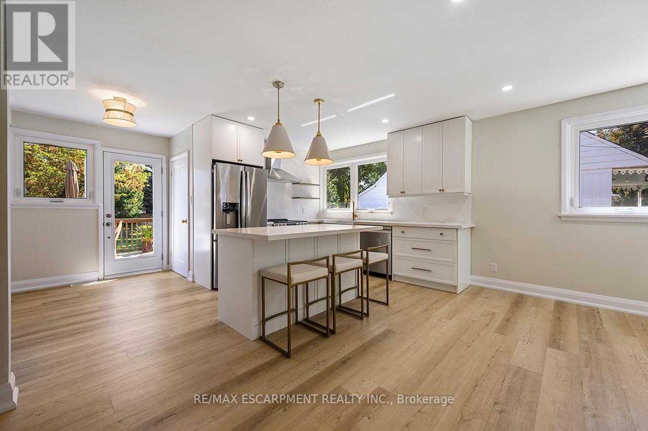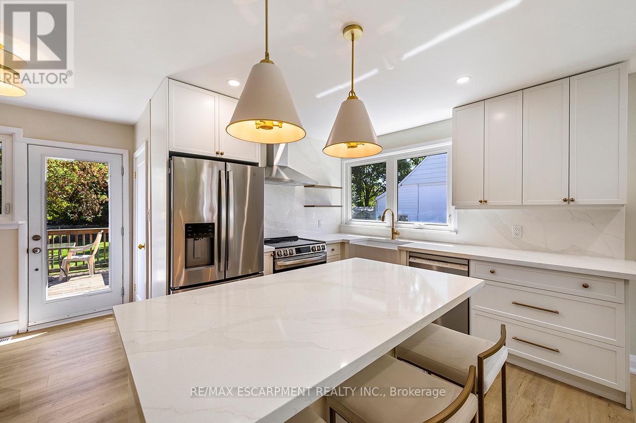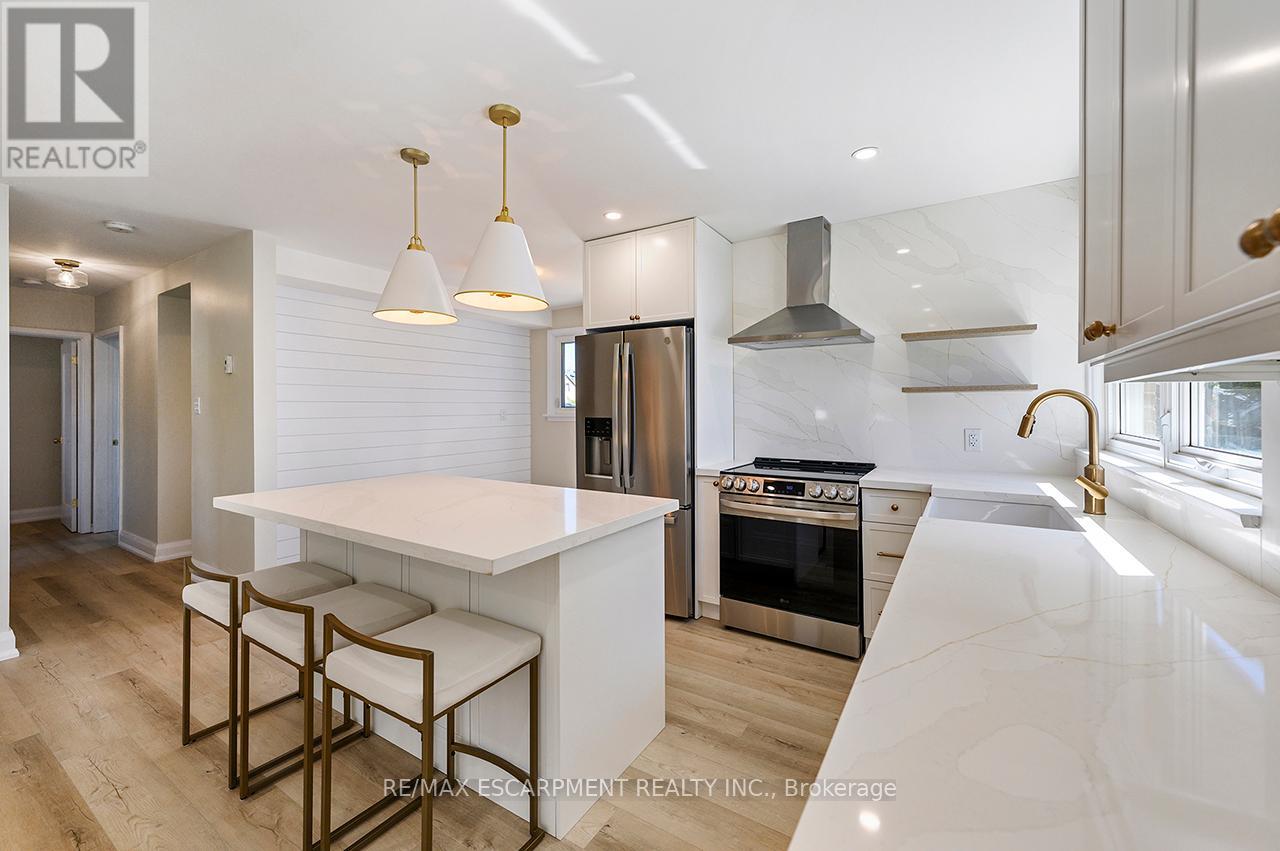 Welcome to this fully renovated bungalow in the heart of Bronte Meadows featuring 3 bedrooms, 1 full bathroom, and a bright, open layout with stylish modern finishes. September 2025 updates include: high-end vinyl floors, brand new kitchen with S/S appliances, quartz countertops, farmhouse sink, updated electrical with pot lights and new light fixtures, bathroom makeover, new doors, washer & dryer, and freshly painted painted throughout. Nestled on a premium 60 x 120 ft lot, with 4 car parking, and surrounded by mature trees, the property provides ample outdoor space, perfect for young families, entertaining, or simply relaxing. Large, unfinished basement allows for ample storage, additional play area for kids or space for a home gym. Just a short walk to top-rated schools, parks, local shops, and the vibrant amenities of downtown Milton, plus only minutes to the GO Station and major highways for easy commuting. A truly rare chance to live in a move-in-ready bungalow in arguably Milton’s most sought-after community. (id:9546)