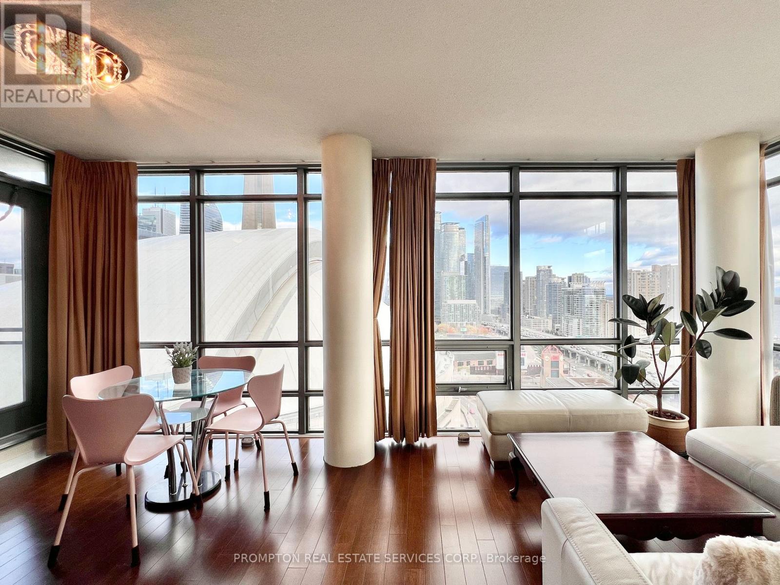 *** Beautifully-furnished One-Bedroom + Den corner unit with iconic CN Tower & Roger Centre Views! *** An incredible opportunity to experience a bird’s eye view of the Roger’s centre and great concerts when the roof is open! This beautiful suite is approximately 660-sf and has one of the best layouts in the building. Featuring a spacious kitchen with gas stove and centre island; separate den with a work station and built-in storage; and wraparound floor to ceiling windows in the living room with spectacular city skyline views. Access to 30,000-Sf Superclub: Fitness centre, indoor pool, full-size basketball court, squash court, tennis court, party room, theatre, bowling lane, guests suites, BBQ area and more! An incredible location and just minutes to everything! Steps to Spadina streetcar that goes to Union+Spadina station, THE WELL Shops+Restaurants, Canoe Landing Park+Community Centre, Rogers Centre, and the Waterfront. Minutes to coffee shops, restaurants, Sobeys and Farmboy supermarket, fitness studios like Sweat & Tonic and Fit Factory, the Metro Toronto Convention Centre, King West, and Tech Hub. Short walk to Union Station (GO Transit+UP Express), Financial District, RBC Waterpark Place, and Scotiabank Arena. Easy access to trails along the Marina, DVP/Gardner, and YTZ Airport. Excellent value – all utilities included. Parking can be included for additional $175/month. Be a part of this vibrant community and move in November 1st! (id:9546)