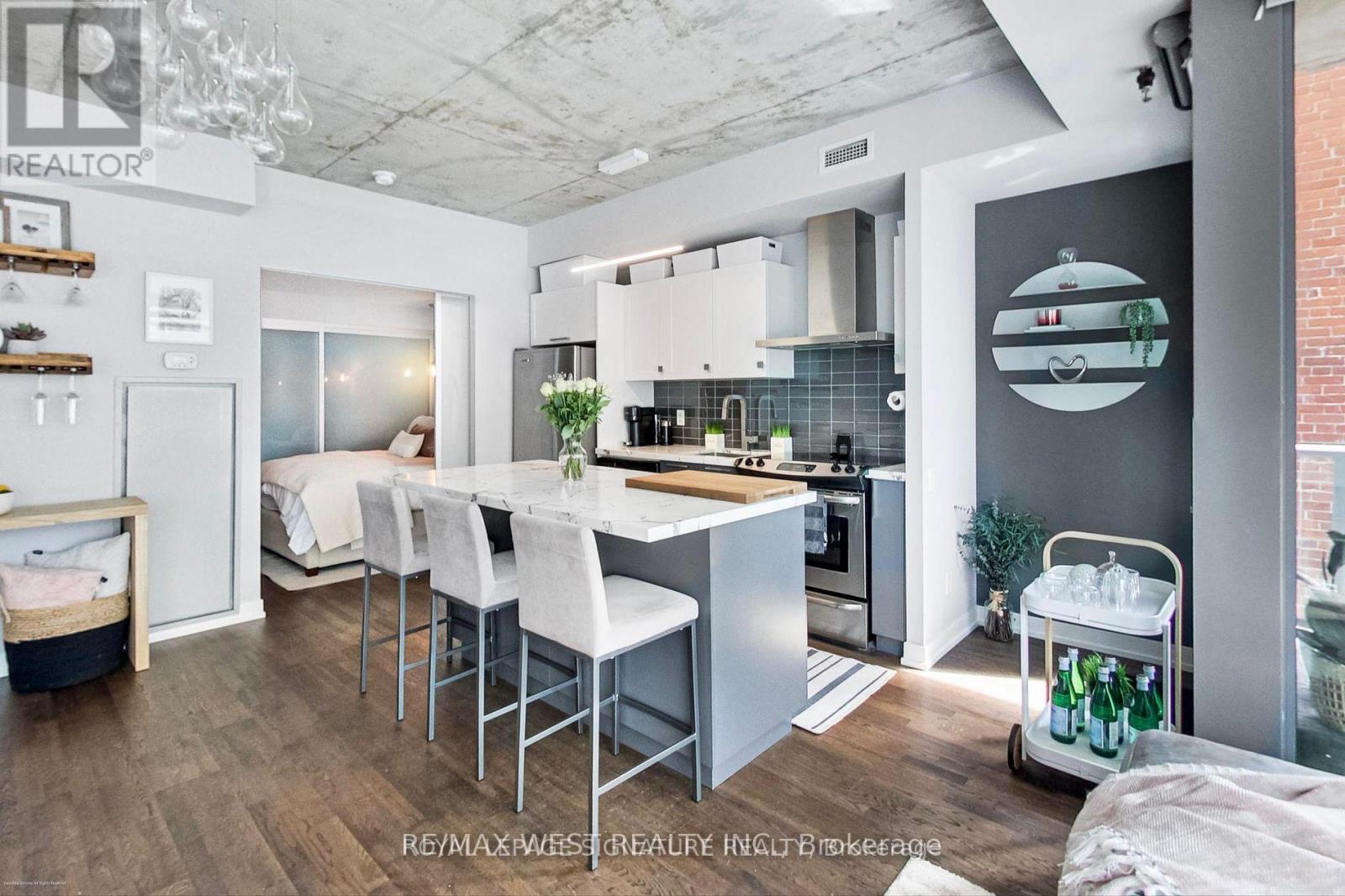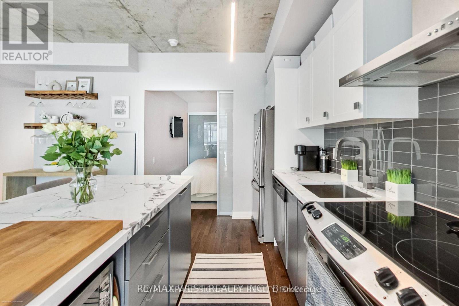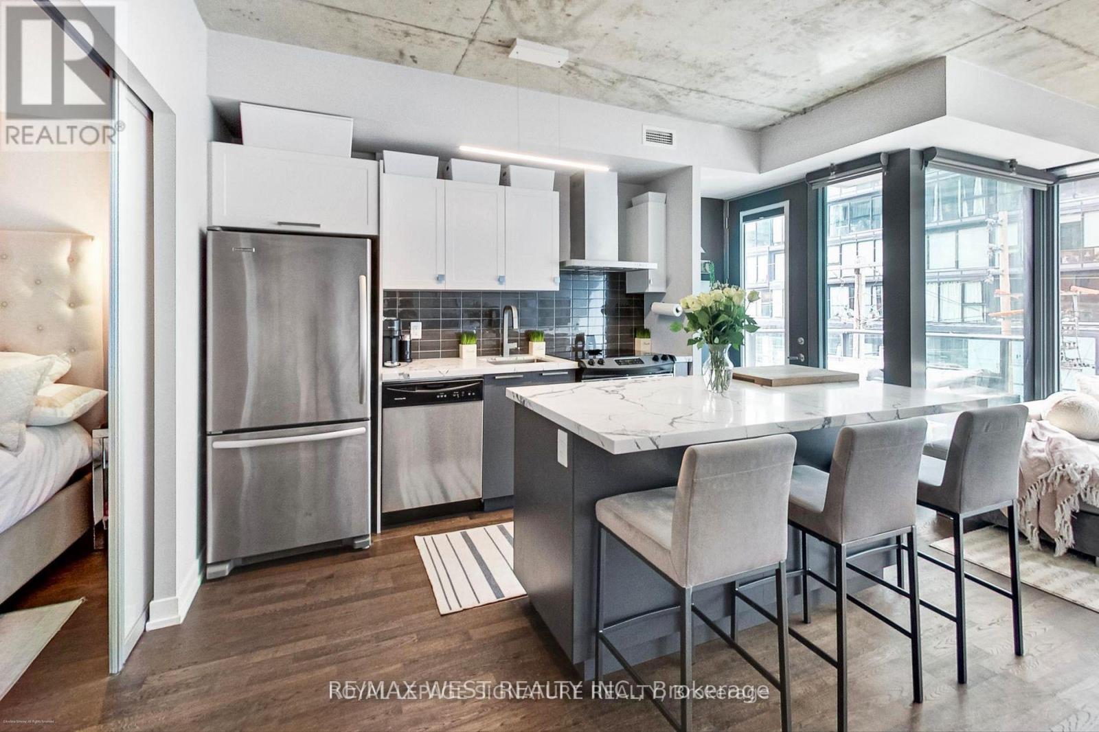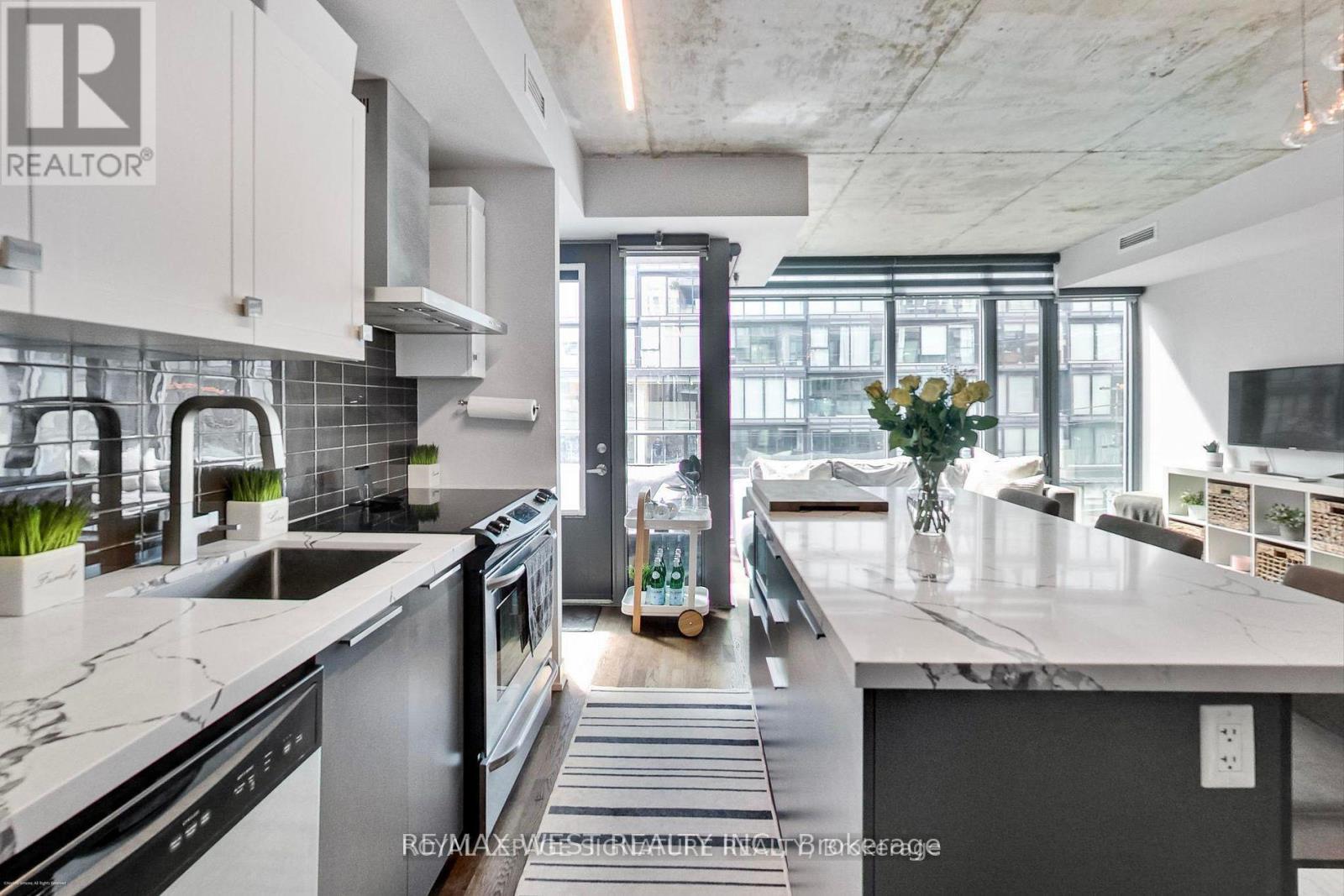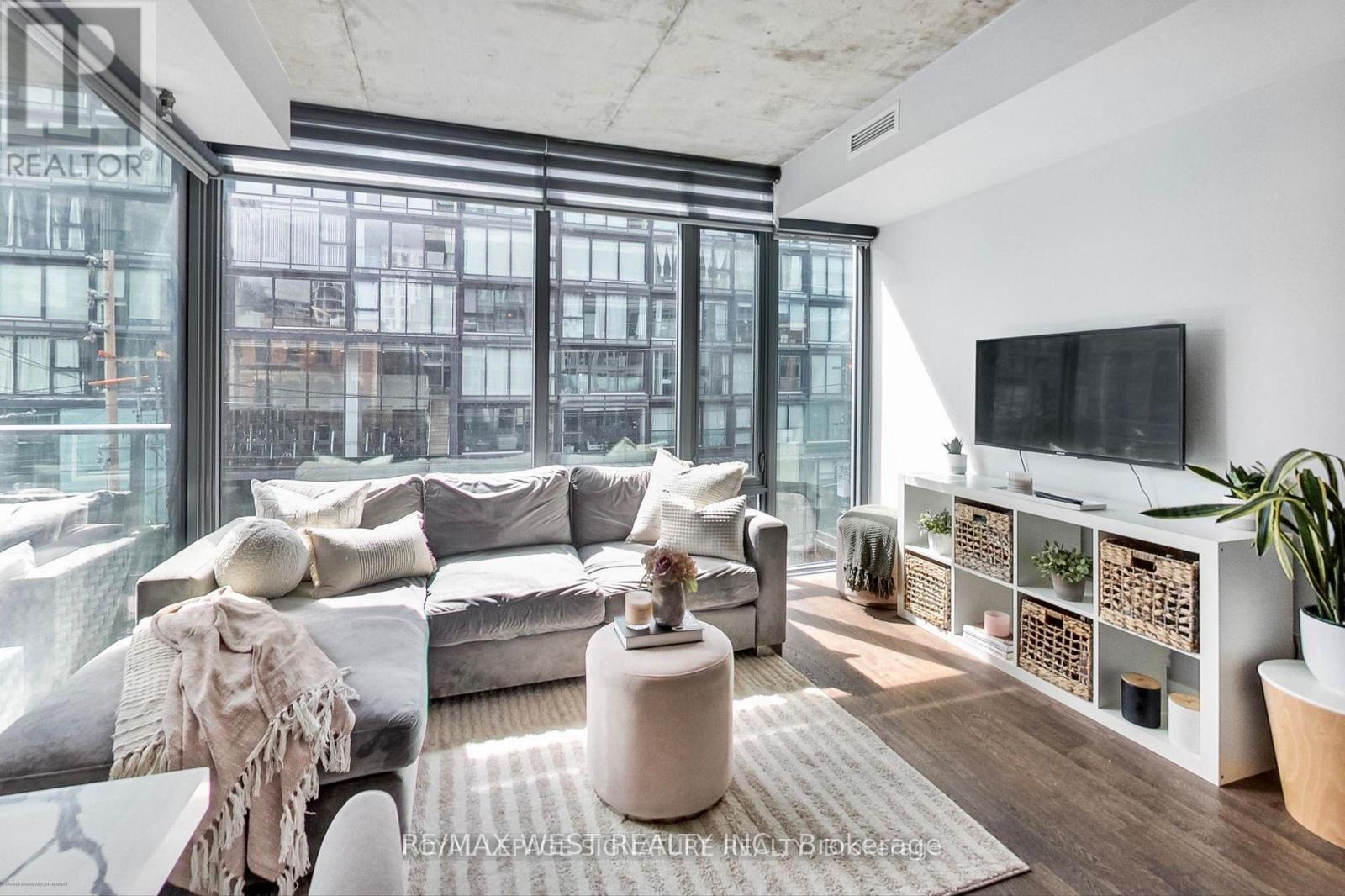 Experience the best of city living in this stunning 2-bedroom suite, perfectly located in the heart of vibrant King West. Set within a boutique mid-rise condominium, this beautifully designed residence offers a refined urban lifestyle. Featuring soaring 9-foot ceilings, expansive floor-to-ceiling windows, and elegant French sliding doors leading to an enclosed balcony, the space is filled with natural light and style. Thoughtfully upgraded throughout, highlights include thick quartz countertops, classic shaker-style cabinetry, custom electric roller blinds, and smartly designed custom closets. The open-concept living area flowsseamlessly for both everyday comfort and entertaining. This exceptional suite truly has it all. (id:9546)