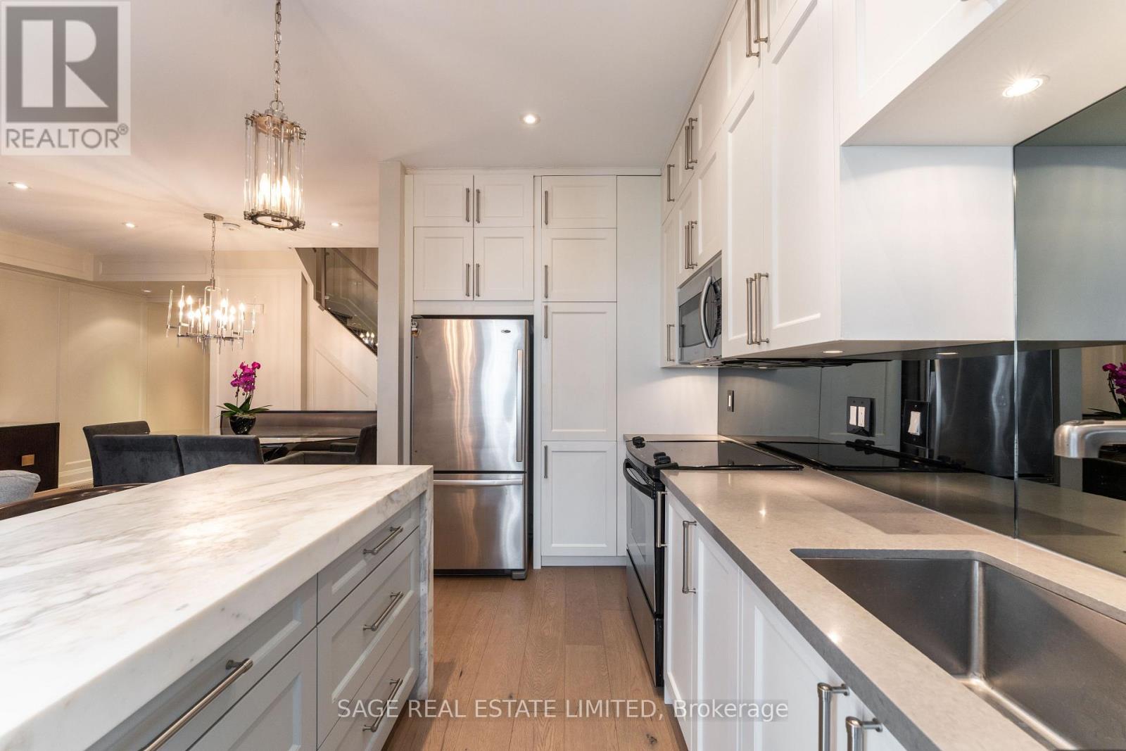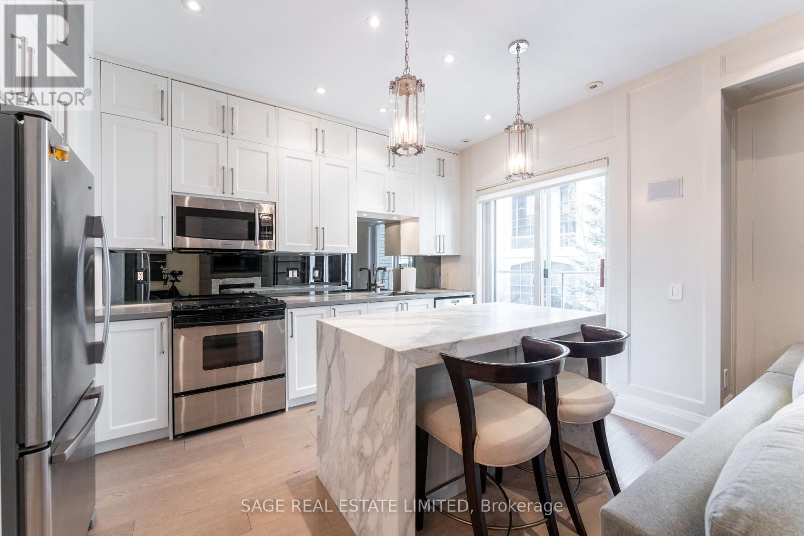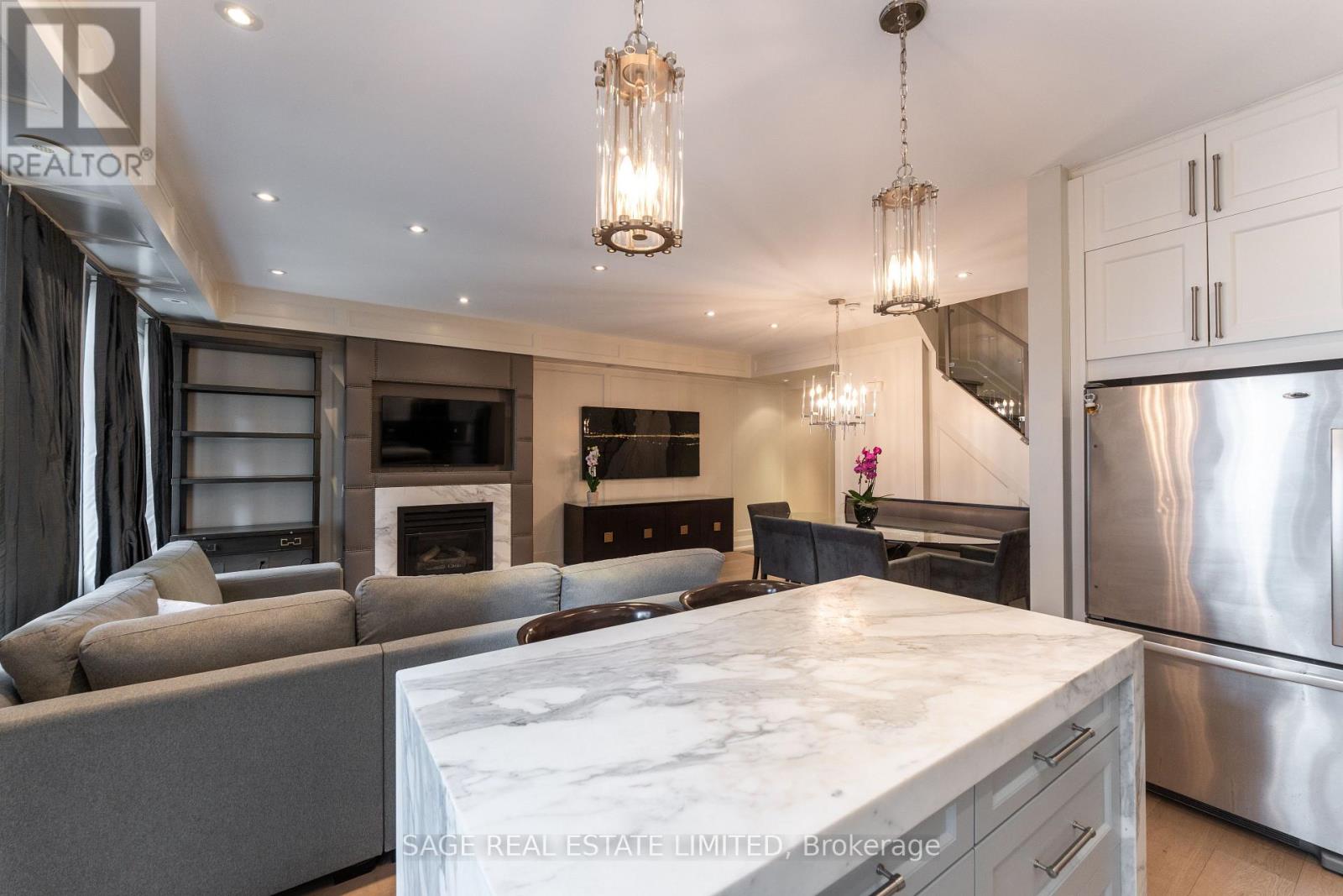 Experience sophisticated living in this beautifully reimagined townhome, thoughtfully renovated with exceptional craftsmanship and detail. Unwind by the sleek, modern fireplace while enjoying immersive sound from built-in speakers. Perfect for entertaining, the open-concept living and dining area is anchored by a show-stopping Calcutta waterfall island. Escape to the expansive primary suite, boasting soaring cathedral ceilings and a luxurious 4-piece ensuite. Soak in panoramic Yorkville views from your private rooftop terrace, complete with a gas BBQ hookup. Enjoy the perfect blend of home-like privacy and the ease of condo-style amenities all just steps from Bloor’s prestigious Mink Mile, the charming boutiques of Summerhill, and both major TTC lines. Urban sophistication meets unbeatable walkability in this stunning Yorkville townhome. (id:9546)