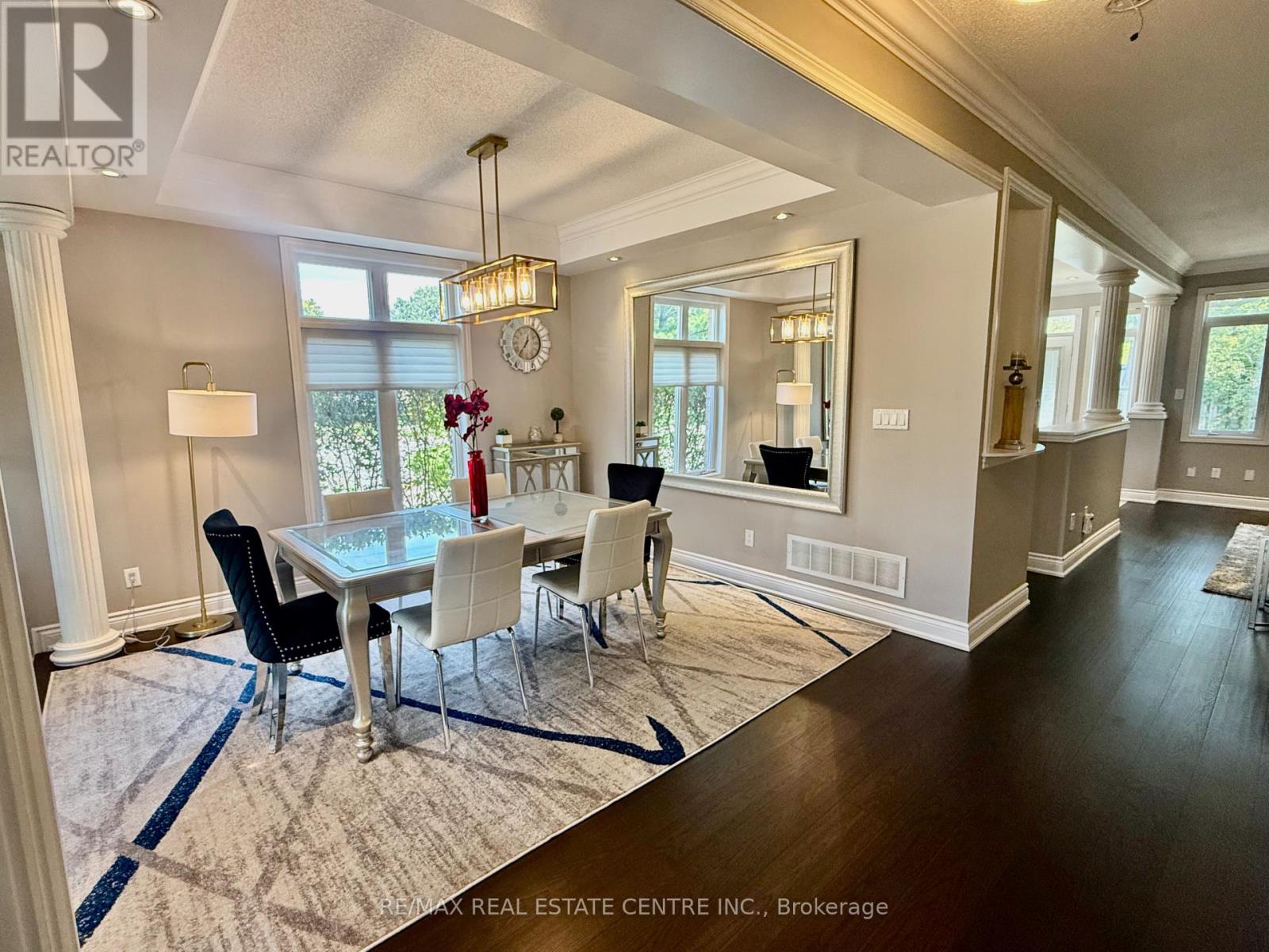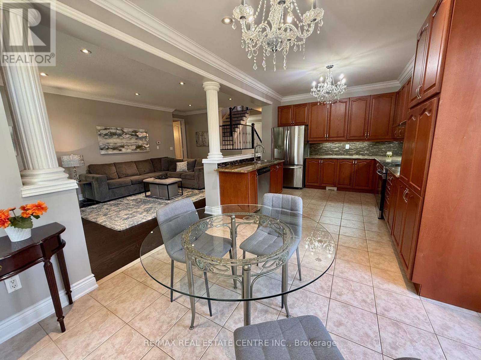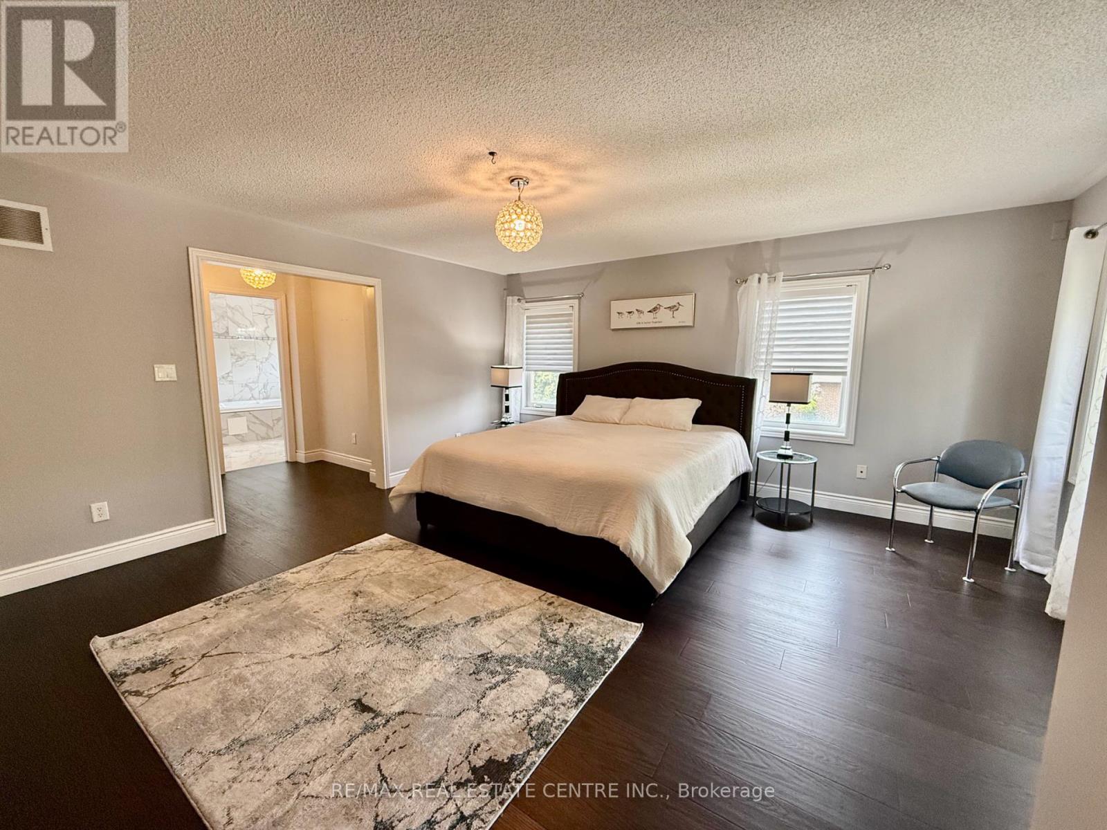 Escape the ordinary with this spectacular sun filled, renovated executive, fully furnished home. Rarely offered with 2 primary suites: 1st primary bedroom, on main floor offers ensuite and walk in closet, and 2nd primary bedroom on 2nd floor, features ensuite and his and her’s walk-in closets. Additional 3 large bedrooms all with hardwood floors. Grand foyer with spectacular ~ 18′ high ceilings with impressive chandelier leads to main floor with ~ 9′ ceiling, gorgeous new hardwood floor throughout & staircase. Sun-drenched open concept living /dining room with large windows. Gourmet kitchen with granite counter tops, breakfast area and walk out to large yard. Huge family room with crown moulding and gas fireplace. Finished open concept basement is perfect for entertaining. Additional room next to a 3 pc bathroom with oversized glass shower can be used as additional space to relax, work, exercise or could be used as additional bedroom. The garage has ample space for your vehicles. Landlord is open to long or short term lease. Excellent Location, short drive to Toronto, Pearson International Airport, major highways, shopping, park, schools. All utilities are extra. (id:9546)
