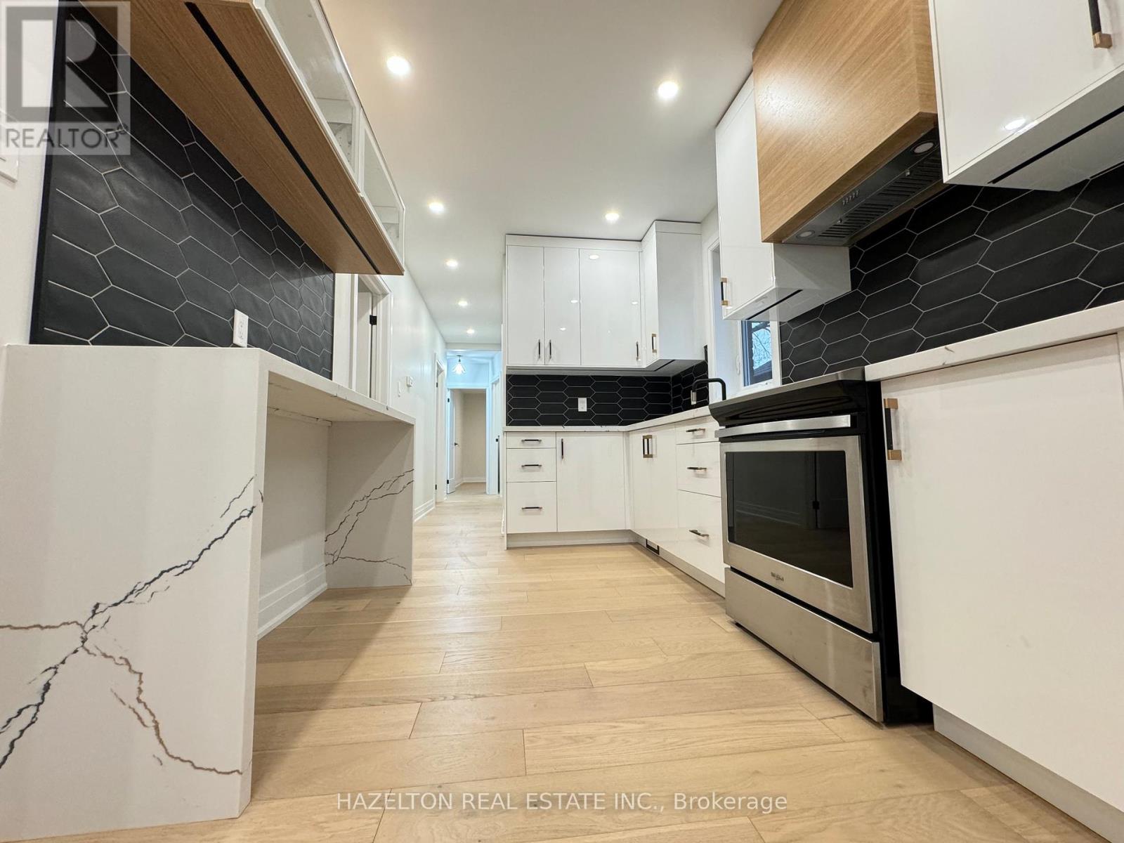 Recently renovated 4-bed, 2-bath apartment with modern open-concept kitchen, breakfast bar, ample cabinetry, electric stove with baffle-filter exhaust, full-size fridge/freezer, ensuite laundry, central A/C, and a private front porch.Prime Etobicoke location minutes to Long Branch GO, TTC, major highways, Sherway Gardens, Pearson Airport, and Humber College. Walk to coffee shops, grocery stores, schools, daycares, parks, Lake Ontario, Marie Curtis Park, and the Waterfront Trail. *1 Driveway parking space, hydro, heat and water included! (id:9546)